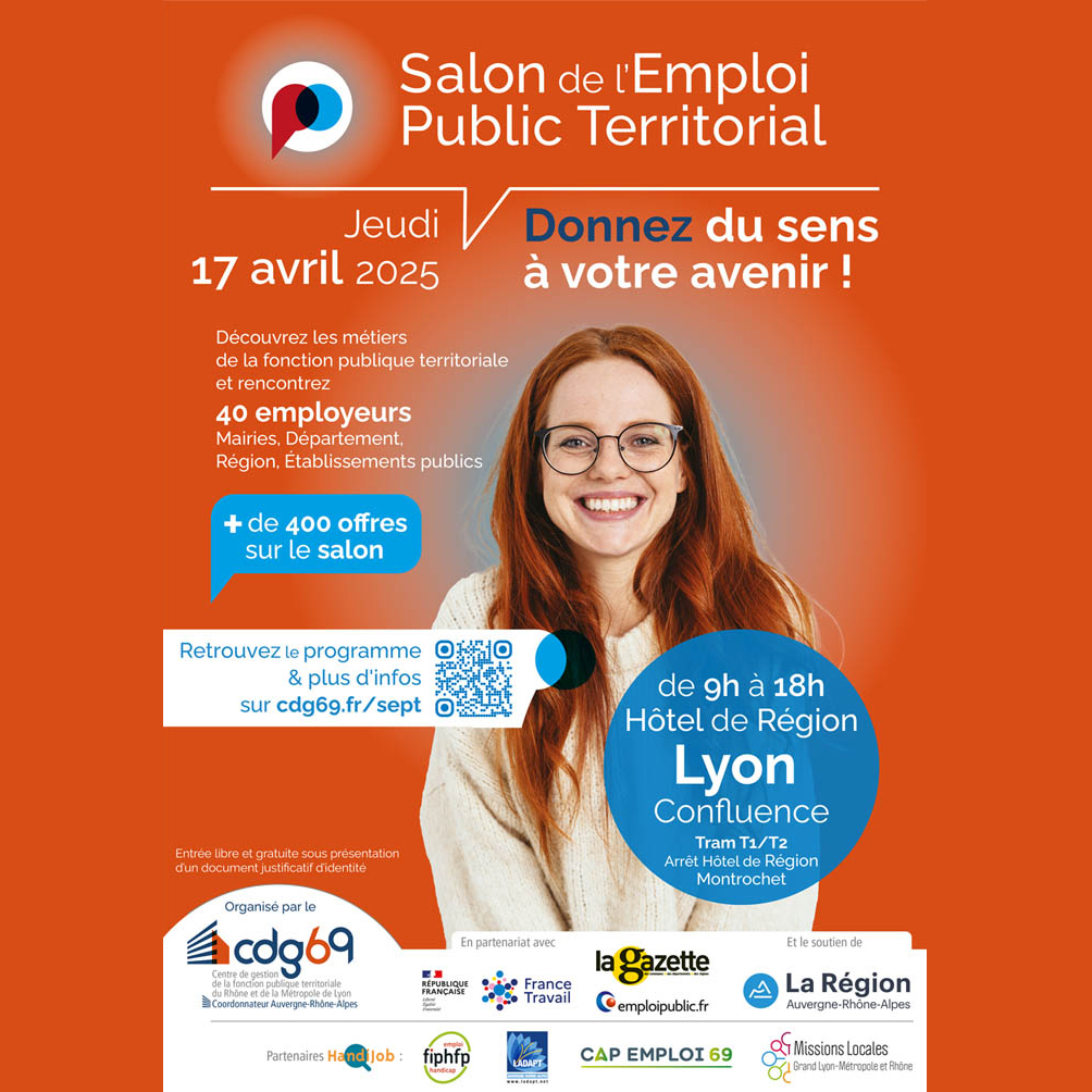 La Ville de Grigny-sur-Rhône participera au Salon de l’Emploi Public Territorial, organisé par le Centre de gestion de la fonction publique territoriale du Rhône et de la Métropole de Lyon. jeudi 17 avril de 9h à 18h à l’Hôtel de Région Auvergne-Rhône-Alpes – Lyon Confluence.