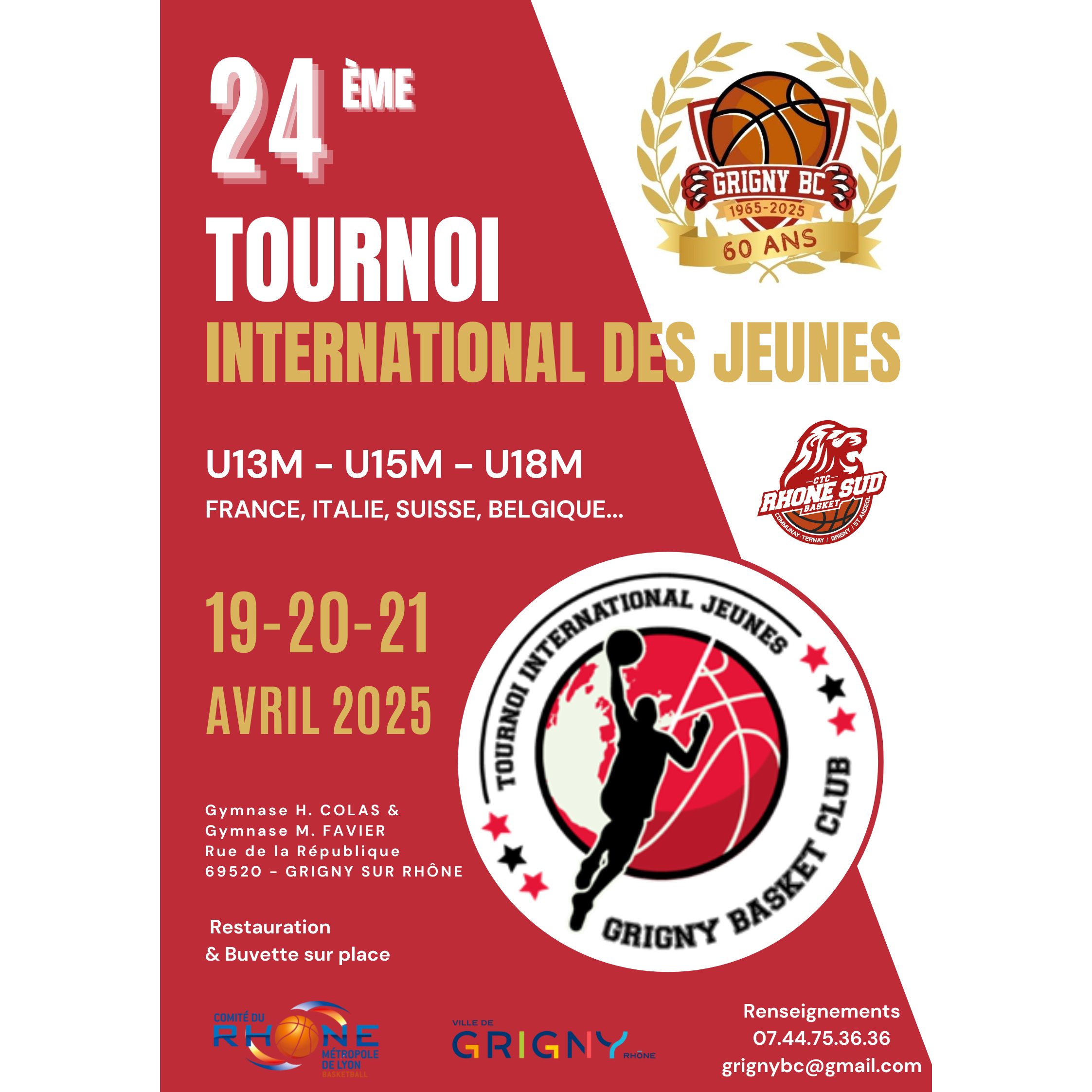 Rendez-vous aux gymnases Henri Colas et Michel Favier, les 19-20-21 AVRIL 2025 pour assister aux matchs des jeunes basketteurs lors du 24ème tournoi international des jeunes.