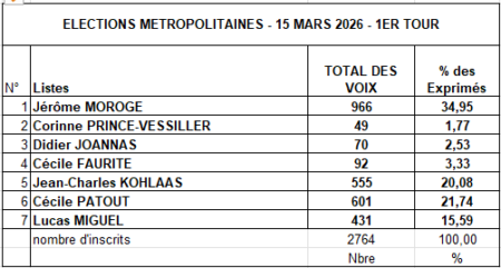 🗳️Résultats – 1er tour des Élections métropolitain...