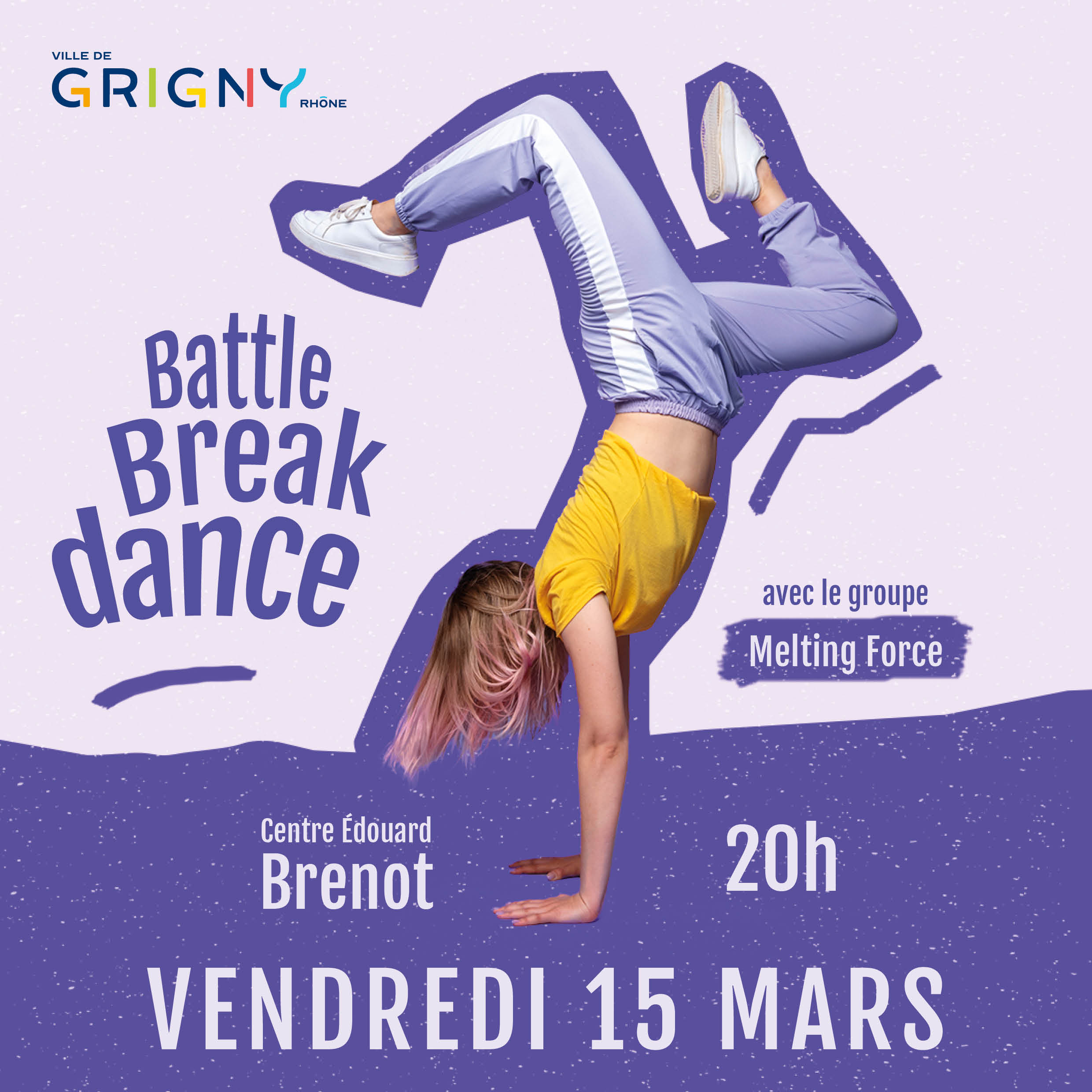 Le centre Édouard Brenot vibrera au son du hip-hop lors d’une battle de breakdance enflammée le VENDREDI 15 MARS à 20h, animée par le groupe Melting Force.