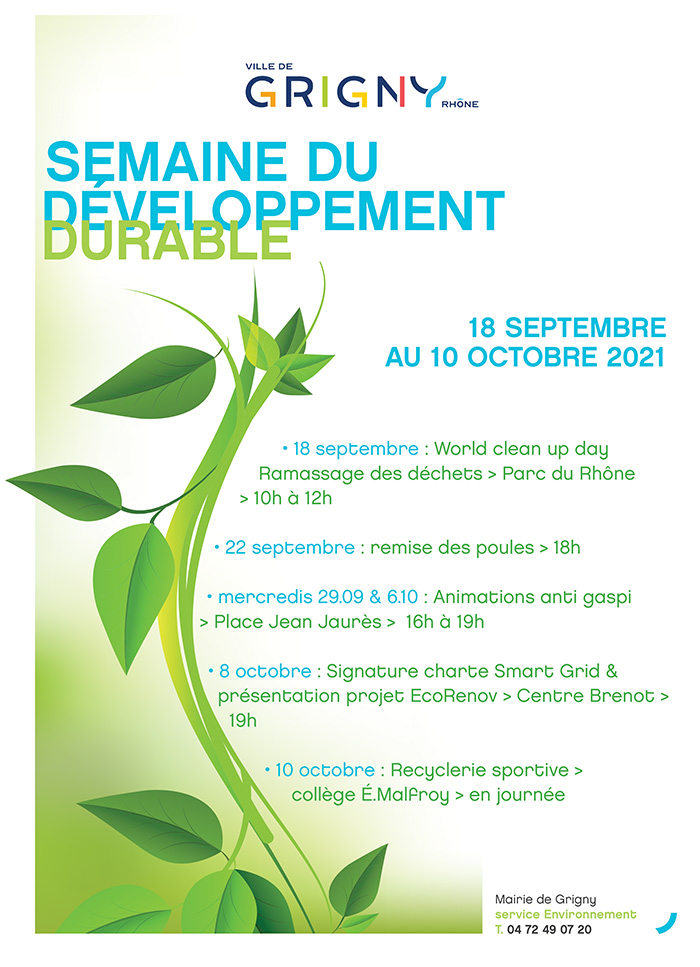 Afin de sensibiliser le public, la Ville de Grigny participe chaque année à la semaine du Développement durable et propose de nombreuses animations autour de cette thématique.