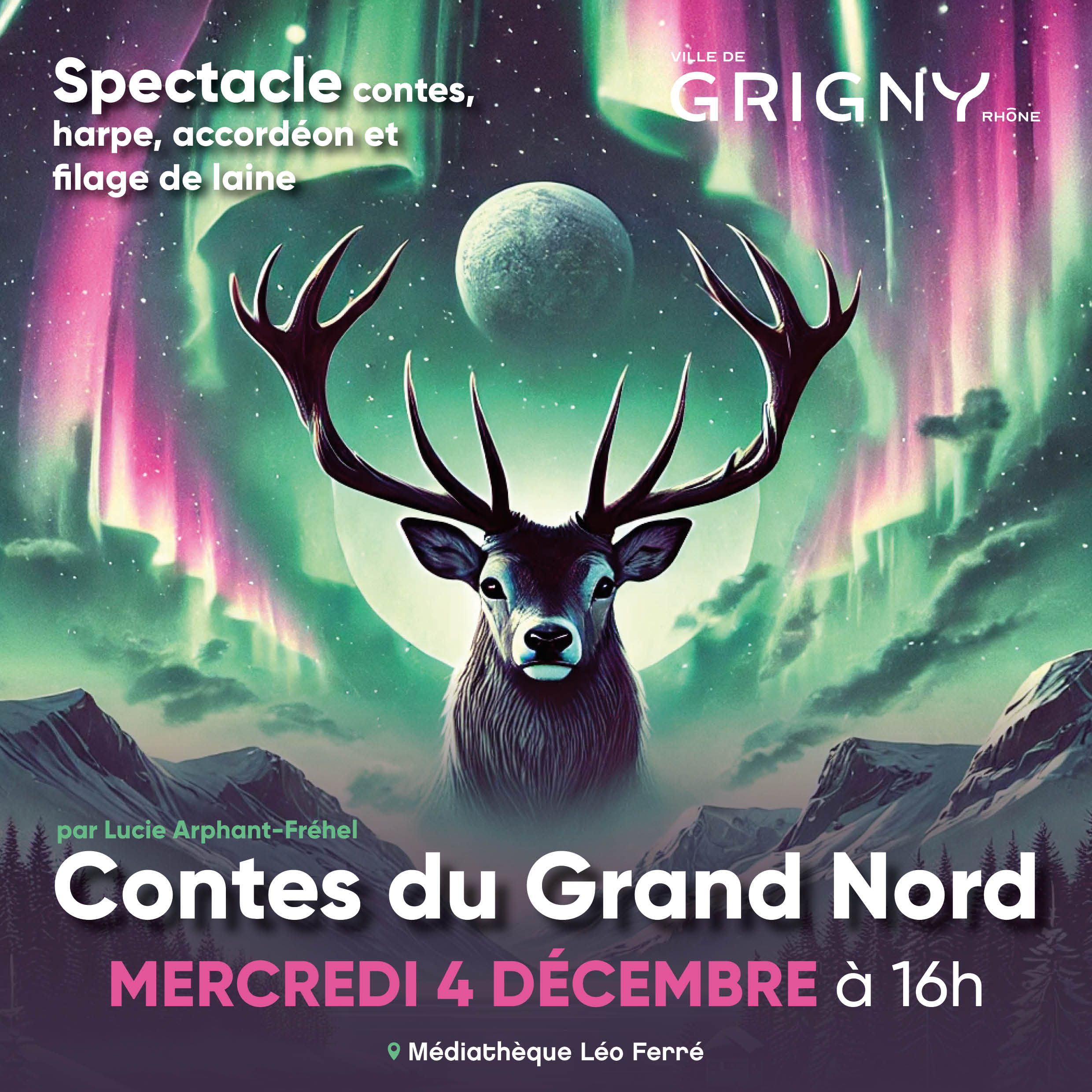Le MERCREDI 4 DÉCEMBRE à 16h, venez découvrir Les Contes du Grand Nord, un spectacle captivant proposé par Lucie Arphant, à la médiathèque Léo Ferré.